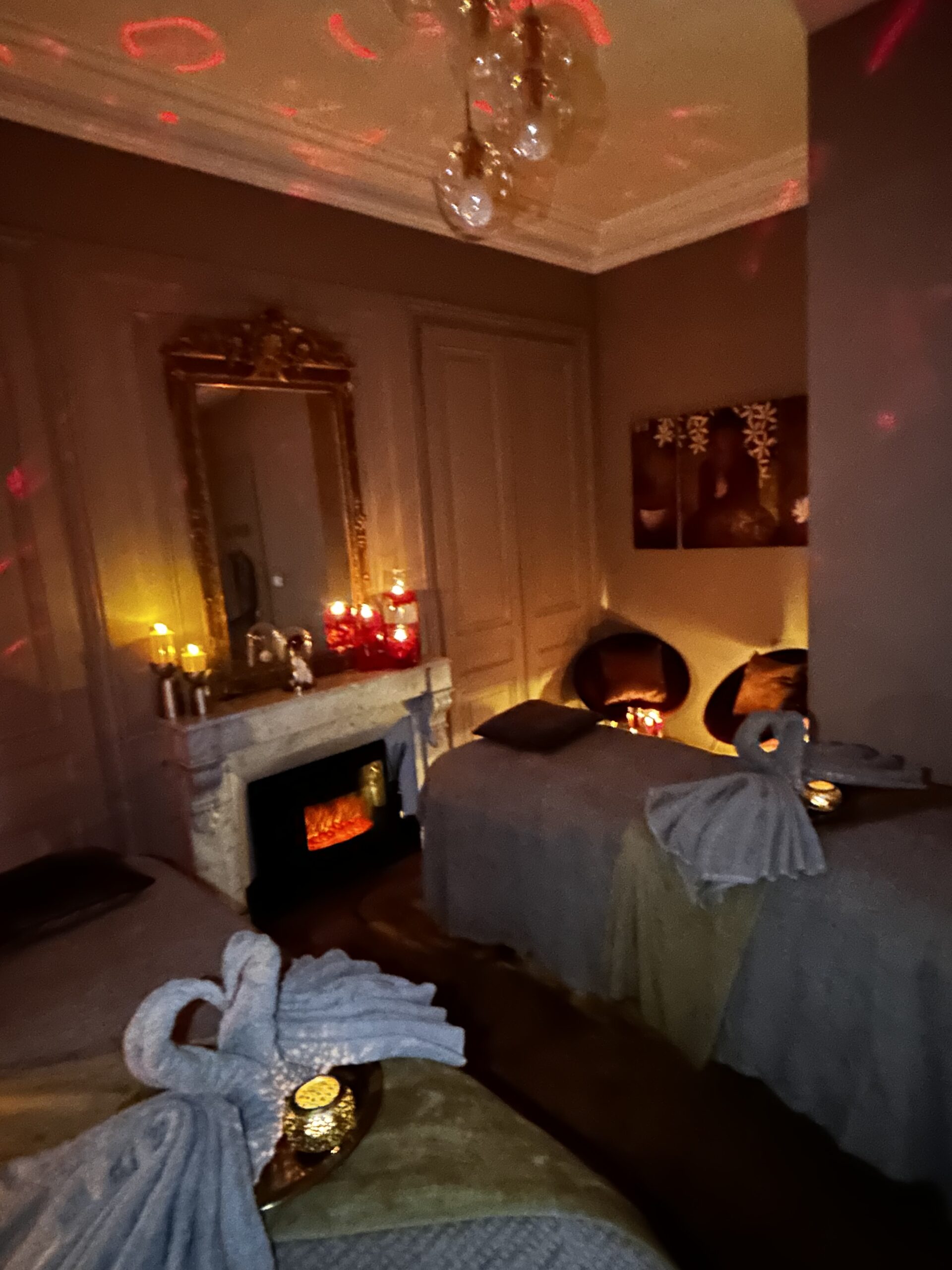 Votre rituel se termine par un moment cocooning autour d’une boisson chaude ou une coupe de champagne et des gourmandises sont offertes dans un espace cosy dédié aux amoureux.